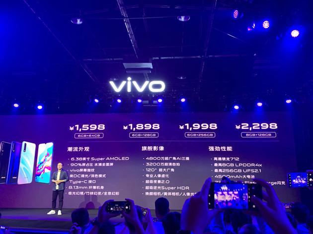 处理器为骁龙712,最高主频2.3GHz。后置4800万超广角三摄,前置3200万像素。电池容量为4500mAh,还支持vivo的FlashCharge快充技术,功率为22.5W,官方称可30分钟充50%电量。