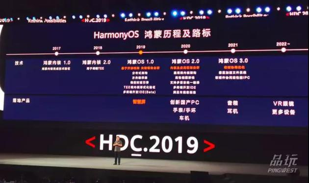 鸿蒙OS第一个落地产品是8月10日首次亮相的新品类——华为旗下荣耀的智慧屏,而并不是哪台手机。根据华为的规划,2020年鸿蒙OS 2.0落地的产品包括国产PC、手表手环和车机。2021年鸿蒙3.0落地产品包括音箱和耳机,2022年之后鸿蒙OS开始运用在VR眼镜里。