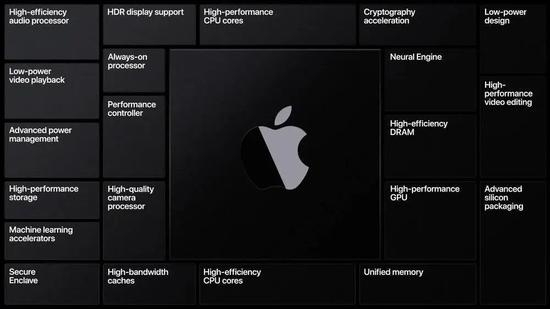 目前的消息显示,苹果 ARM 架构的 Mac 处理器,依然会采用 SoC(System on Chip)的形式,即把 CPU、GPU、内存等打包封装在一个芯片上,因为 ARM 的精简指令集需要的晶体管数量更少,因此可以整合了更多的子单元,包括CPU、GPU、神经引擎(Neural Engine)、先进电源控制模块、安全隔区Secure Enclave等等。